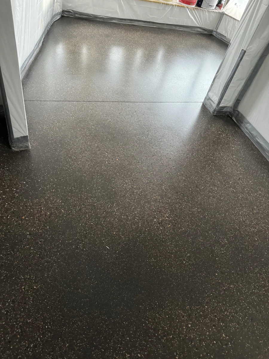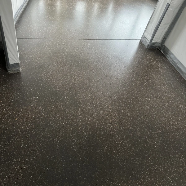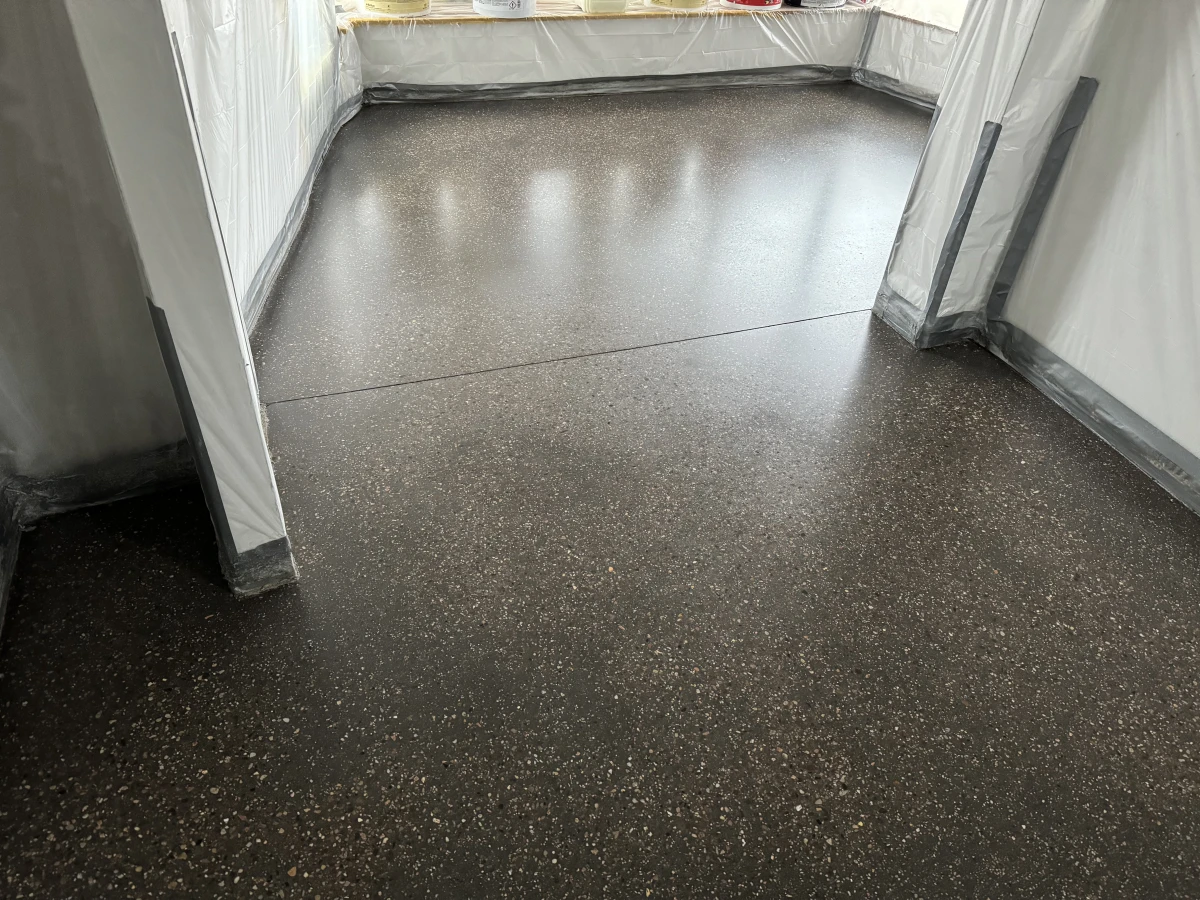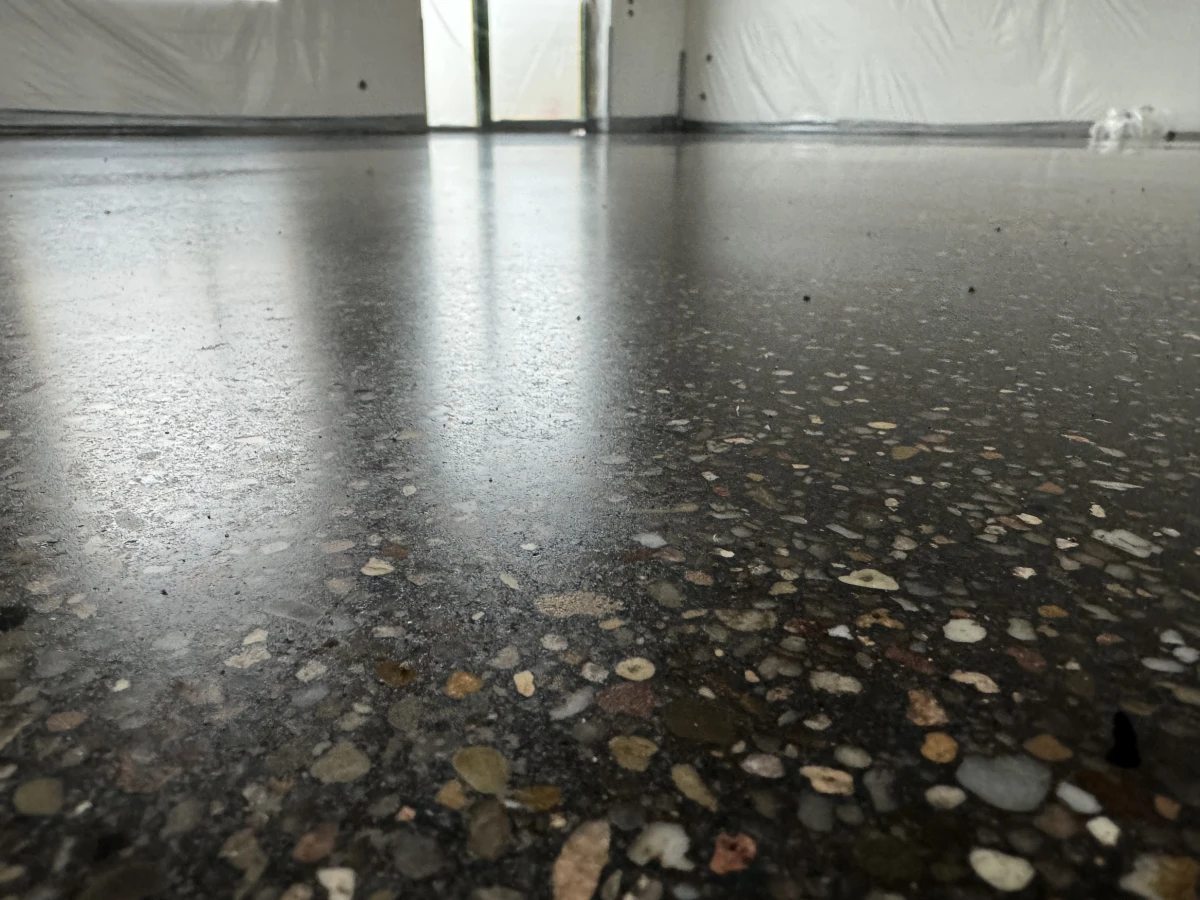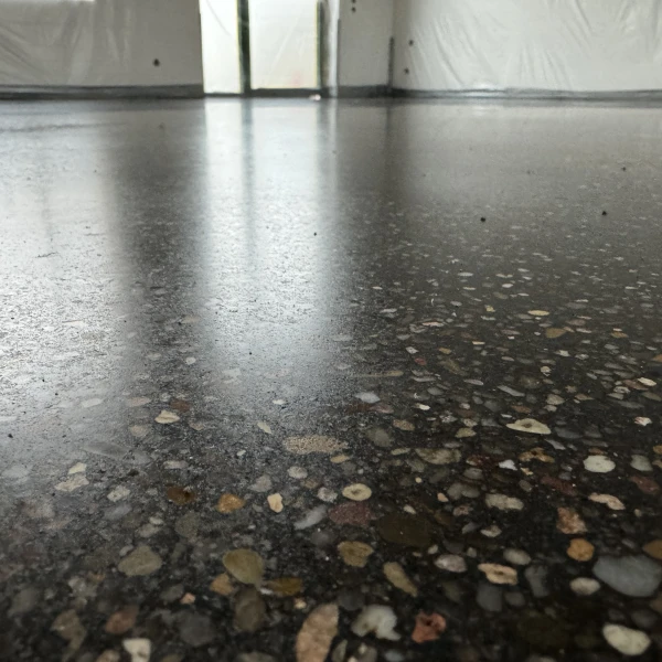 Schwarzer Sichtestrich mit Fleckenstruktur